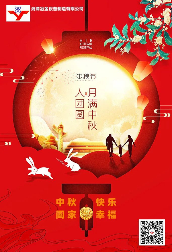 值此中秋佳節(jié)到來之際,湘潭市冶金設(shè)備制造有限公司謹(jǐn)向一直陪伴公司成長、不離不棄的各界朋友、合作伙伴、全體家人們致以深深的感謝與崇高的敬意,并祝大家:節(jié) 愉 快!月圓人圓家圓圓圓滿滿!